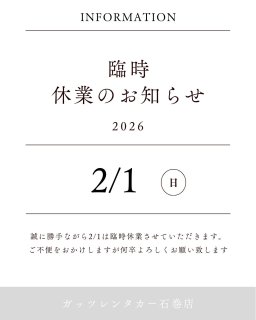 2/1(日)は誠に勝手ながら臨時休業と致します。