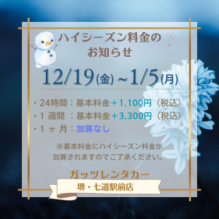【堺・七道駅前店】冬季ハイシーズン料金のお知らせ